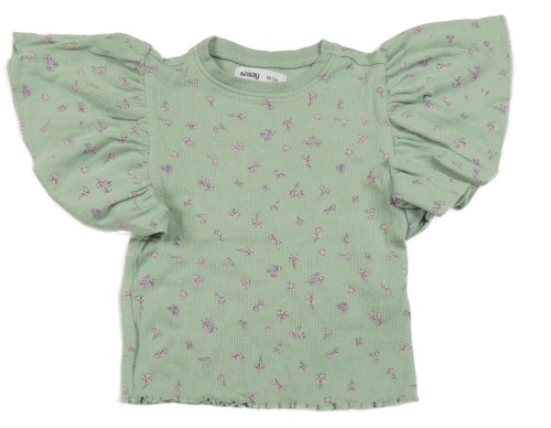 Olivové puntíkaté žebrované crop tričko s kytičkami a volánky sinsay