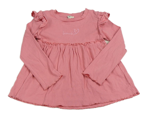 Korálová žebrovaná tunika s nápisem a srdíčkem a volánky RIVER ISLAND