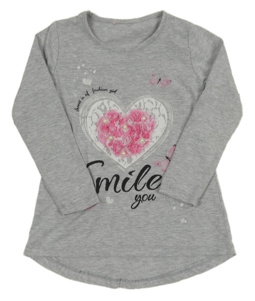 Šedá melírovaná tunika se srdíčky a perlami a motýlky a nápisy