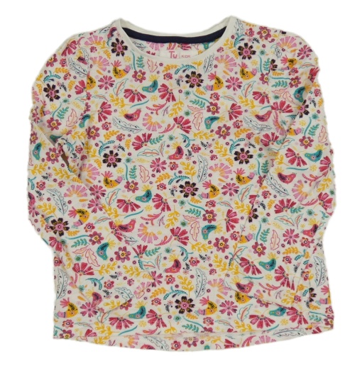 Bílé triko s kytičkami a ptáčky Tu