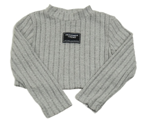 Šedé úpletové žebrované crop triko s nášivkou Shein