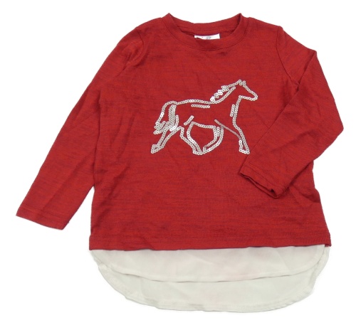 Červené úpletové triko s jednorožcem a tylovým volánkem Topolino