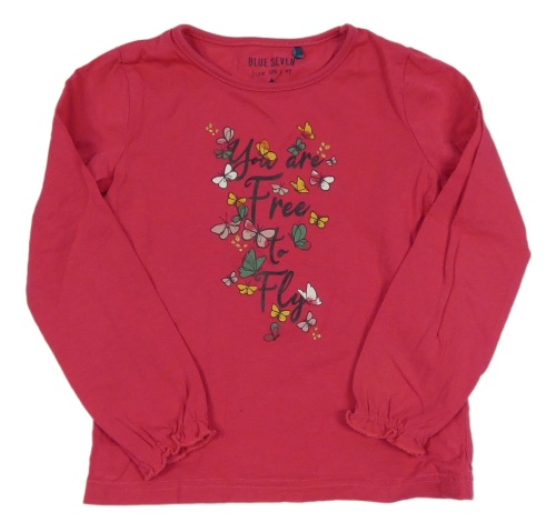 Tmavorůžové triko s motýlky a nápisy BLUE SEVEN