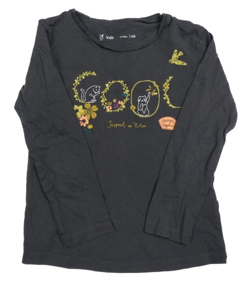 Antracitové triko s kočkami a květinami