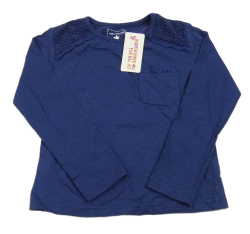 Nové - tmavomodré melírované triko s krajkou a kapsou YD