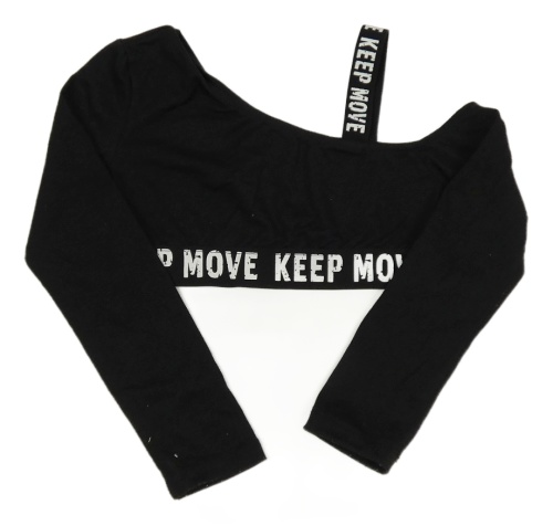 Černé crop asymetrické triko s nápisy Iefiel