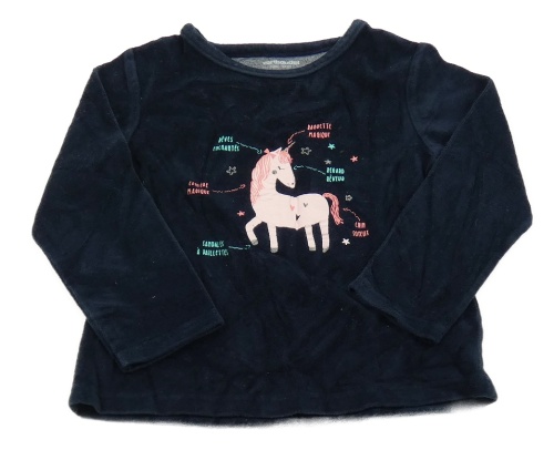 Tmavomodré sametové triko s jednorožcem Vertbaudet