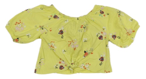 Citronové oversize crop triko s beruškami a motýlky a kytičkami a uzlem Kids