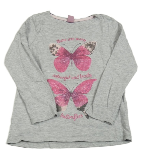 Šedé melírované triko s motýlky a nápisy dopodopo