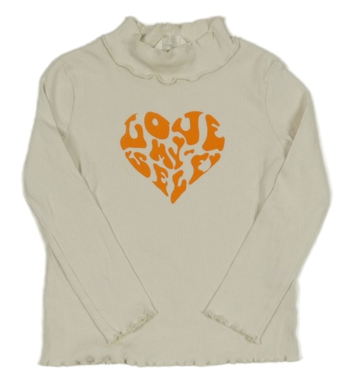 Smetanové žebrované triko se srdíčkem a stojáčkem H&M