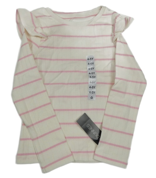 Nové - Bílo-růžové pruhované žebrované triko s volánky Dunnes