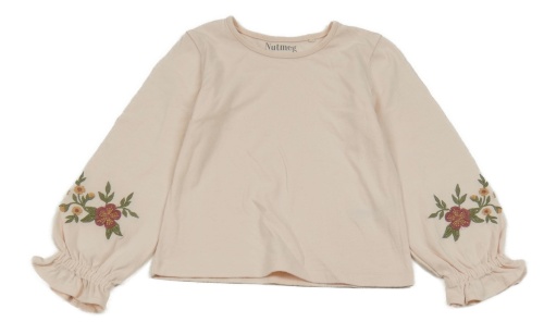 Světlerůžové triko s výšivkami květů na rukávech Nutmeg