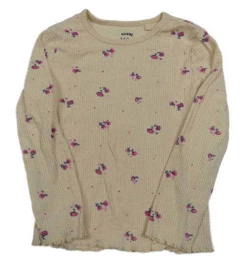 Béžové květované žebrované triko se srdíčky Sinsay