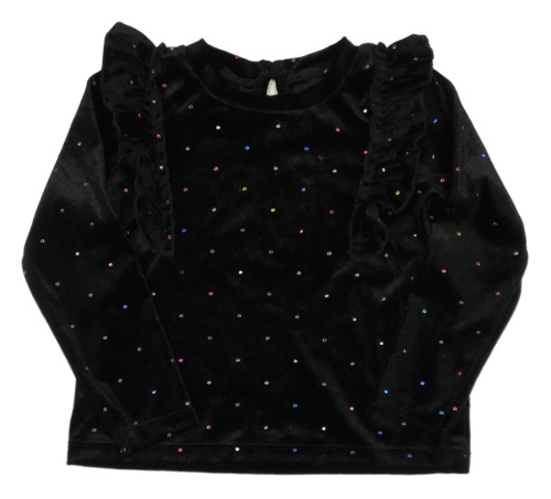 Černé sametové triko s puntíky a volánky Dunnes