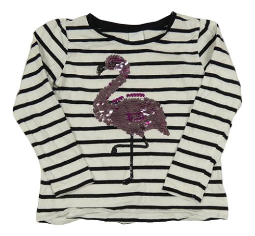 Bílo-černé pruhované triko s plameňákem z překlápěcích flitrů C&A