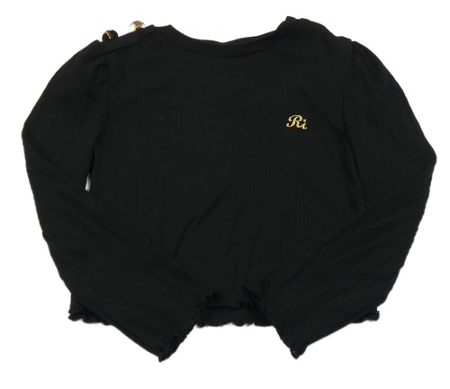 Černé žebrované crop triko s gombíky River Island