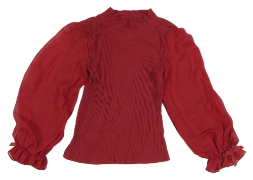 Rubínové žebrované triko s tylovými rukávy