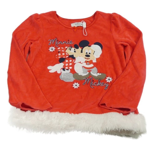Nové - Červené sametové triko s Mickeym, Minnie a kožešinou Disney