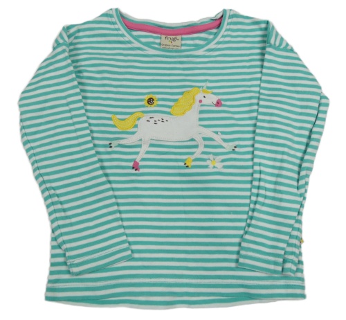 Zeleno-bílé pruhované triko s jednorožcem