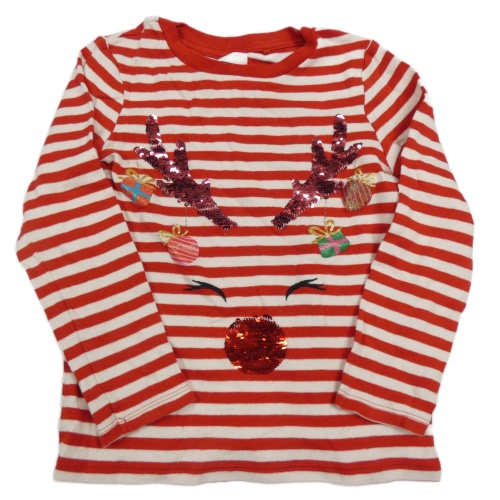 Červeno-bílé pruhované triko se sobem z flitrů Next