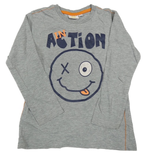 Šedé melírované triko se smajlíkem a nápisem Kids