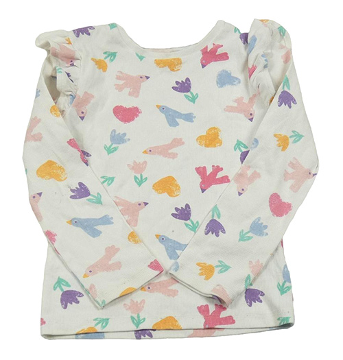 Bílé žebrované triko s ptáčky a volánky F&F