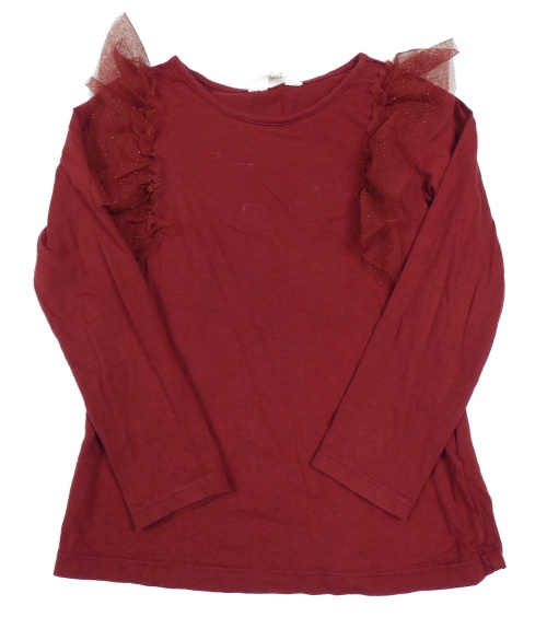 Vínové triko s tylovými třpytivými volánky H&M