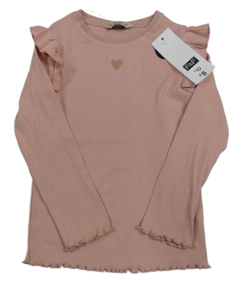Nové -Světlerůžové žebrované triko s volánky a srdíčkem F&F