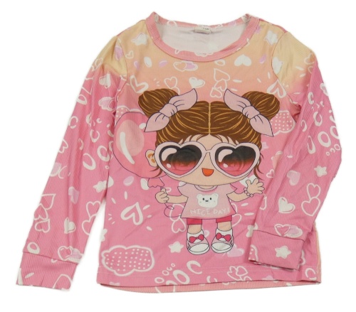 Růžovo-broskvové žebrované triko s dívkou a srdíčky SHEIN