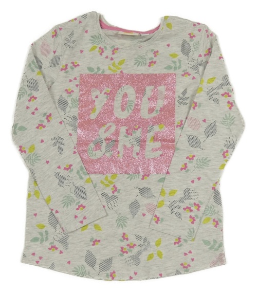 Šedé kytičkované triko s nápisem Kids