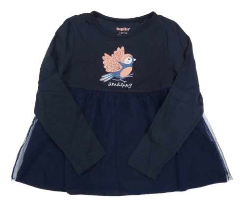 Tmavomodré triko s ptáčkem a tylem Lupilu