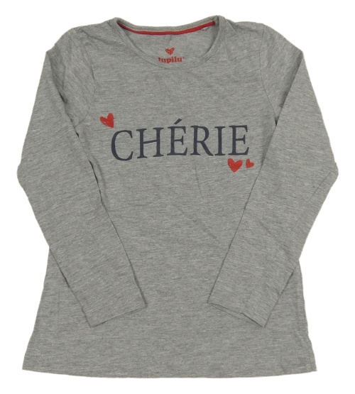 Šedé melírované triko s nápisem a srdíčky lupilu
