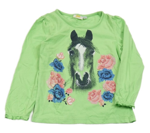 Zelené triko s koníkem a květy a volánky Kids