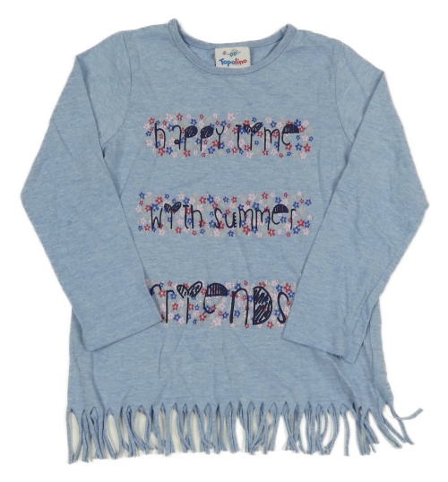 Modré triko s kytičkami a nápisem Topolino