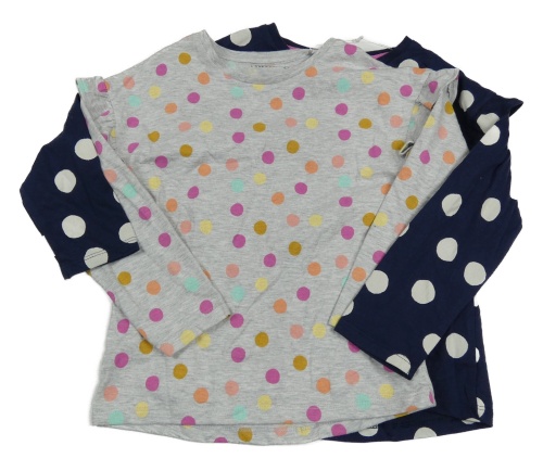 Nové - 2x triko - šedé melírované puntíkaté triko s volánky + tmavomodré Nutmeg