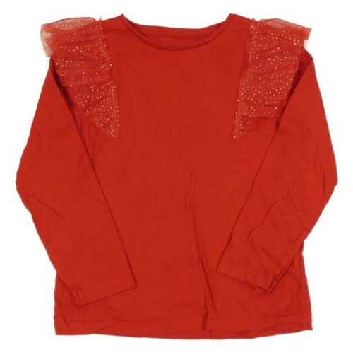 Červené triko s tylovými volánky se zlatými puntíky F&F