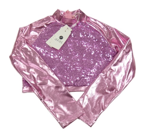 Nové - růžové lesklé crop triko s flitry