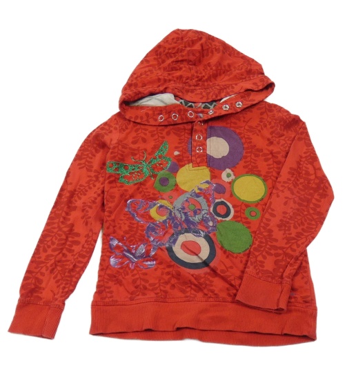 Červené vzorované triko s motýlem a kapucí Desigual