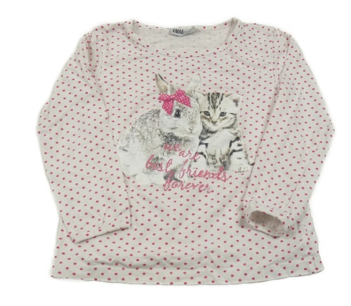 Bílé puntíkaté triko s kočkou a králíkem X-Mail