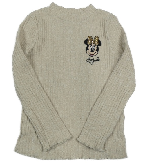 Béžové žebrované úpletové triko s Minnie s flitry C&A