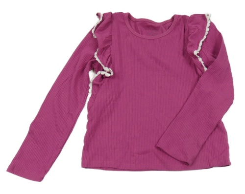 Malinové žebrované triko s volánky s krajkou MAX STUDIO