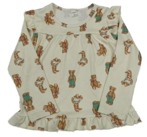 Smetanové žebrované triko s medvídky a volánky Shein