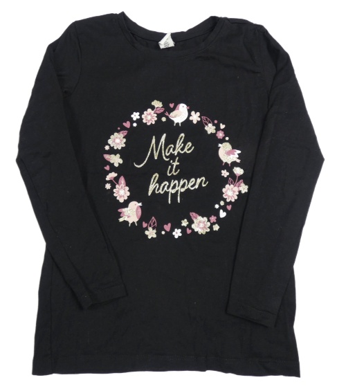 Černé triko s kytičkami a nápisem Dopodopo