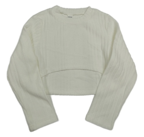 Bílé crop úpletové žebrované triko shein