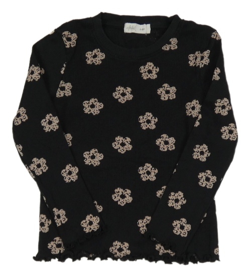 Černé kytičkované žebrované triko
