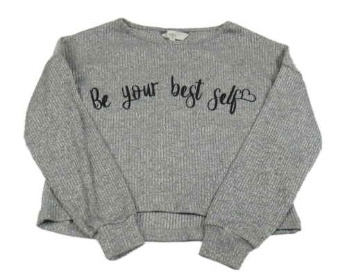 Šedé žebrované úpletové crop triko s nápisem E-Vie