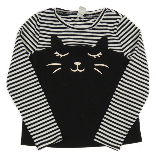 Černo-bílé pruhované triko s kočkou Shein