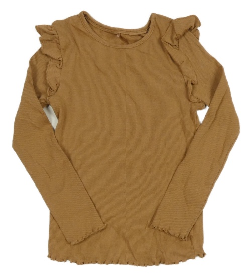 Hnědé žebrované triko s volánky George