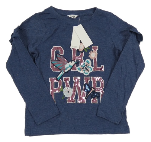 Nové - Tmavomodré melírované triko s nápisem z flitrů a ptáčkem M&Co.