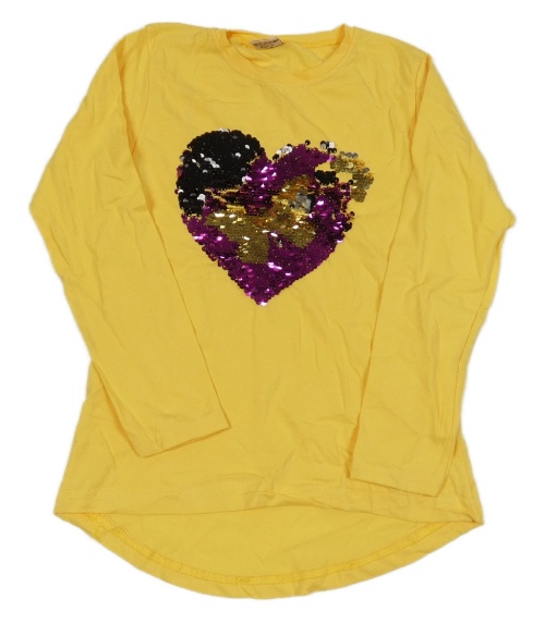 Tmavožluté triko se srdíčkem z překlápěcích flitrů